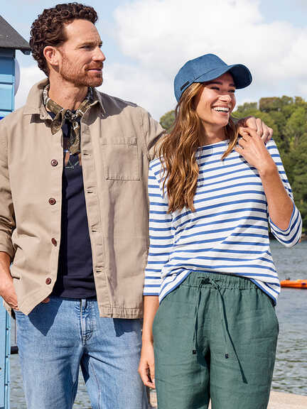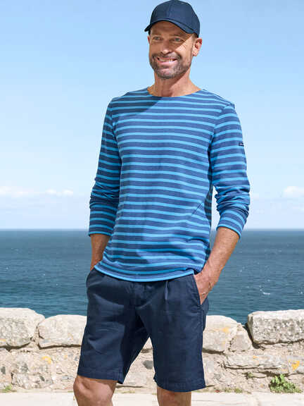Das gestreifte Shirt hat sich längst als zeitloser Klassiker etabliert, über seine Wurzeln in der bretonischen Seefahrt hinaus. Gefertigt aus festem, griffigem Baumwoll-Jersey, bewahrt es stets seine Form. Das Marinière ist die perfekte Basis für einen legeren Freizeit-Look. Verleiht, unter einem Blazer oder Sakko getragen, auch einem gepflegten Auftritt eine Note maritimer Lässigkeit. Während Saint James als Hüter des authentischen Originals gilt, finden Sie bei uns auch moderne, britische Interpretationen von Barbour und Charles Robertson, die diesen Klassiker auf neue Weise zelebrieren.