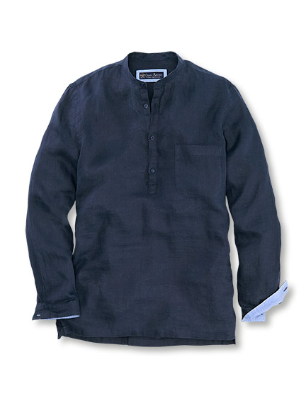 Der Stehkragen feiert bei Hemden und Blusen sein Comeback: einst von Umlegekragen verdrängt, jetzt ein Favorit für zeitlose Outfits. Ob geschlossen zum Sakko im Business-Look oder leger mit offenem Knopf zur Sommerchino – das Grandfather Shirt ist ein echter Allrounder. Ursprünglich ein Arbeiterhemd der irischen Landbevölkerung, passt es heute perfekt zu Casual Styles mit Jeans und Sneakern oder klassisch mit Chinos und Lederschuhen. Selbst die Damen finden Gefallen an den lässigen Shirts mit Stehkragen.