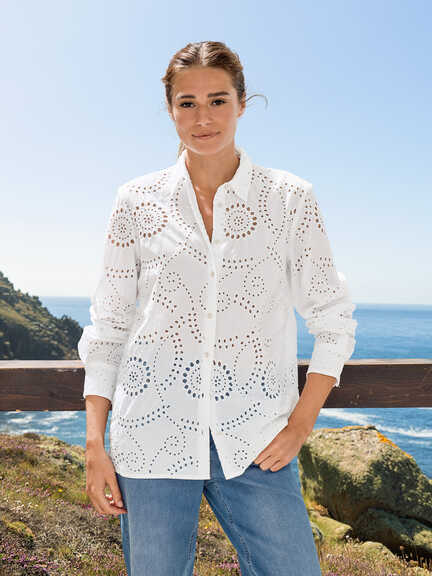 Sommerbluse mit Lochstickerei